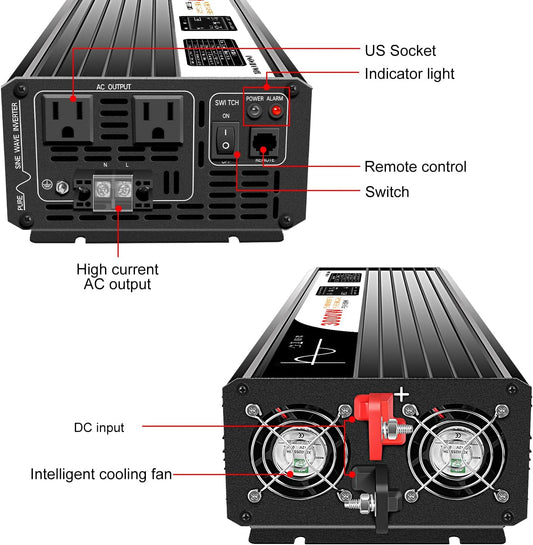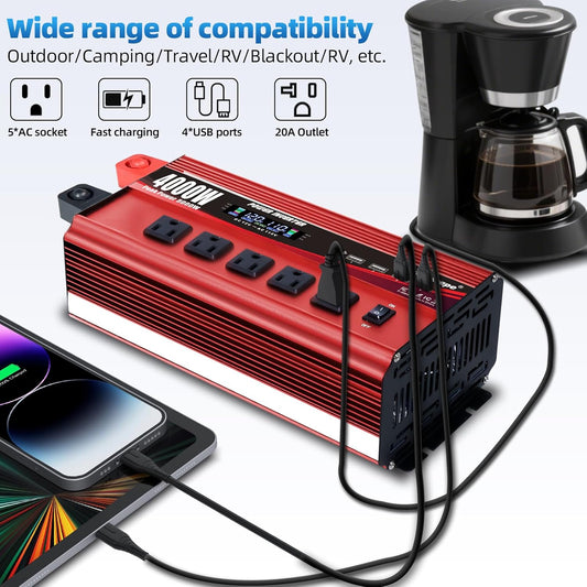 4000W Power Inverter 12V to 110V/120V DC to AC with LCD Display, Remote Controller 5 x AC Outlets and 4 x 3.1A USB Car Adapter for Car Truck Boat RV Solar System