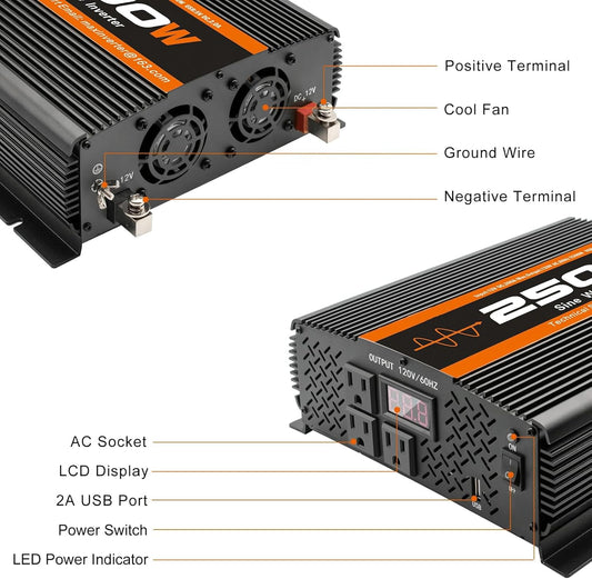 2500W Inverter Pure sine Wave RV Inverter Power Inverter 12V to 110 for Car Truck semi Truck Vehicles