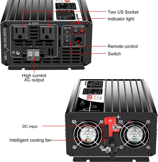3500W Pure sine Wave Inverter 3500 watt Inverter 12 Volt Inverter RV Inverter Solar Inverter 12V to 120V Inverter 3500 watt Inverter Power Inverter with 4 Power outlets