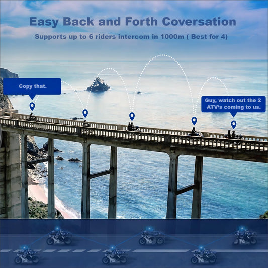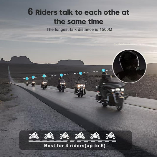 Q4 Motorcycle Bluetooth Communication System Headset Intercom, 4 Riders 1500m Music Sharing, FM, Noise Cancellation, IP65 Waterproof, Dual Pack (Q4)
