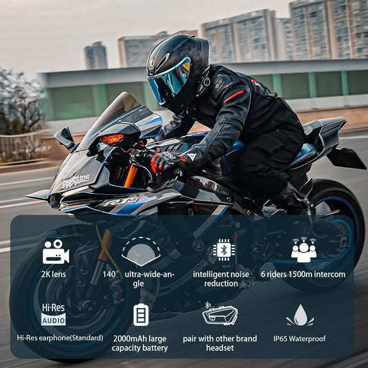 FreedConn R3 PRO Motorcycle Helmet Bluetooth Headset with Camera Recorder, Motorcycle Communication Systems, WiFi 2K 0.75mi/1200m 6 Riders Group Intercom, Built-in & External Mic System, 128G TF Card