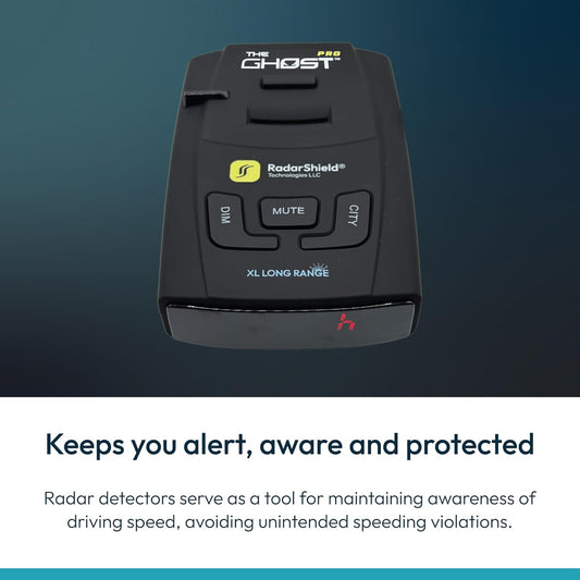 RadarShield Advanced Radar Detector for Cars, Ghost Pro Radar & Laser Detector with Long Range Detection, IVT Filtering, Laser Detection, Mute & Dim Buttons, Includes Mount & 12V Adapter, Black