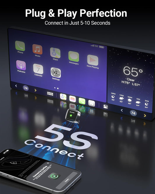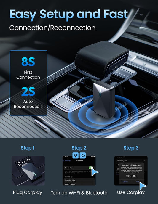 Wireless CarPlay Adapter for Apple iPhone, Converts Wired to CarPlay Wireless Adapter, Plug & Play, Easy Use, Fast Stable Connection, for Apple iPhone iOS 10+ and Cars