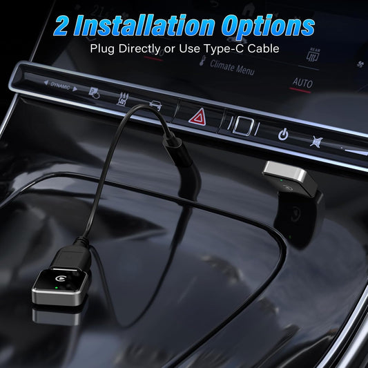 Wireless CarPlay Adapter for iPhone, 2025 Carplay Wireless Adapter for Apple & Android Auto (2016+ Models), Compatible with Cars with Factory Wired Carplay, Car Play Dongle with USB/USB-C (Dark Grey)