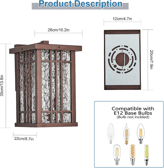 2-Light Outdoor Wall Light E26 Base Metal Frame - Brown Exterior Waterproof Lanterns with Clear Glass,Porch Wall Mount Lighting for Garage, Patio(Bulb not Included)