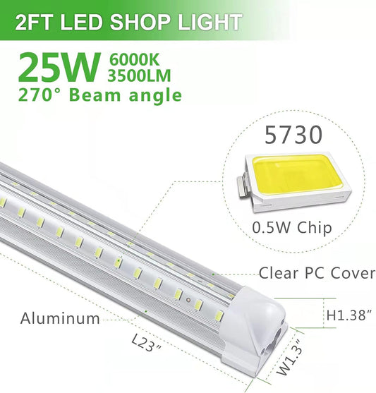 2FT LED Shop Light, 25W 3500LM 6000K/White Super Bright, T8 Integrated LED Tube Light Fixture,Plug and Play, Linkable LED Shop Lights for Room, Garage, Workbench, Under Cabinet (2 Pack)