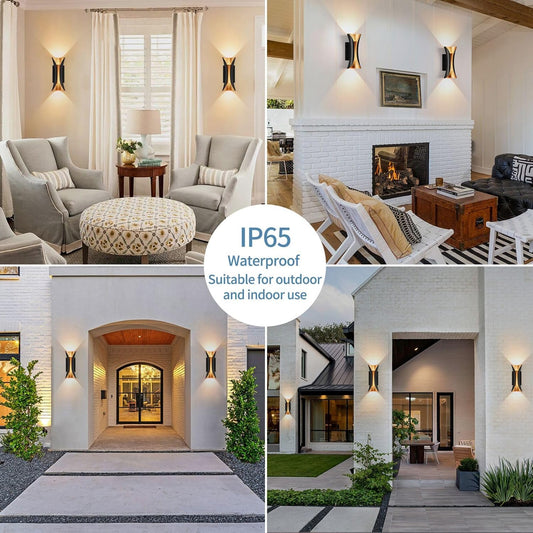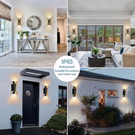 2-Pack Outdoor Wall Light LED 20W (H) 11.8in Aluminum - Black Gold Waterproof Exterior Lighting Fixture,3000K Warm,Up Down Porch Sconces Brightens to Patio,Garage,Front Door