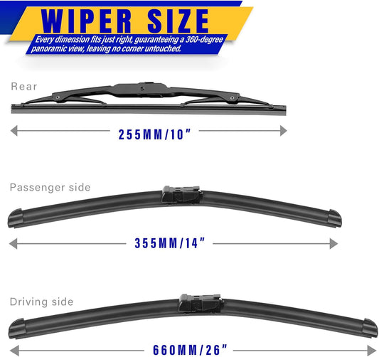 26" 19" 14" Windshield Wiper Blades Replacement for Subaru Outback Legacy 2010 2011 2012 2013 2014 / Nissan Murano 2003-2007 Premium All Weather Front Rear Wipers Set - OEM Quality (Pack of 3)