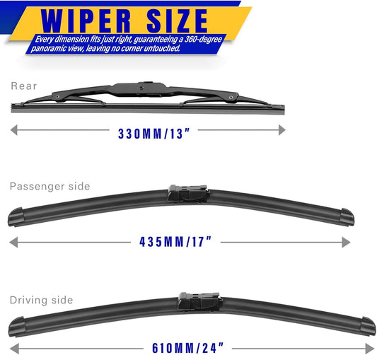 24" 18" 13" Windshield Wiper Blades Replacement for Chevrolet Chevy Equinox 2018 2019 2020 2021 Premium All Weather Front Rear Wipers Set - OEM Quality (Pack of 3)