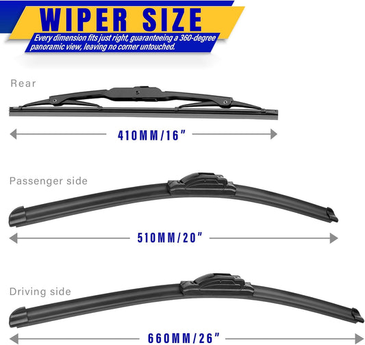 26" 17" 12" Windshield Wiper Blades Replacement for Honda CRV CR-V 2017 2018 2019 2020 2021 2022 Premium All Weather Front Rear Wipers Set - OEM Quality (Pack of 3)