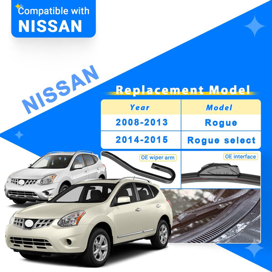 Windshield Wiper Blades Replacement for Nissan Rogue 2008 2009 2010 2011 2012 2013 / Nissan Rogue Select 2014 2015 Original Factory Quality Front Rear Wipers Blade Set - 26" 14" 12"