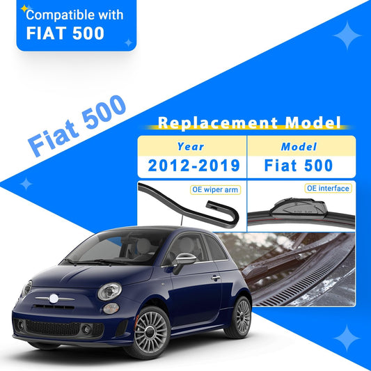 Windshield Wiper Blades Replacement for 2012-2019 Fiat 500 Original Factory Quality Front Rear Wipers Blade Set for My Car - 24" 14" 12" (Pack of 3)