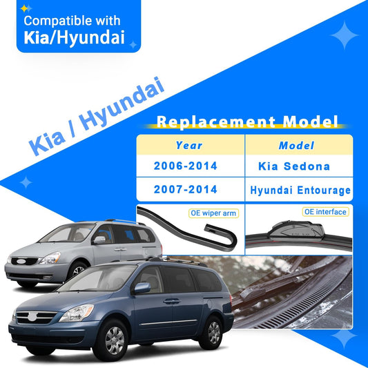 Windshield Wiper Blades Replacement for 2006-2014 Kia Sedona / 2007-2014 Hyundai Entourage Original Factory Quality Front Rear Wipers Blade Set for My Car - 26" 18" 16" (Pack of 3)