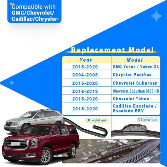Windshield Wiper Blades Replacement for 2004-2008 Chrysler Pacifica / 2015-2020 GMC Yukon Chevrolet Suburban Tahoe Cadillac Escalade Front Rear Wipers Blade Set - 22" 22" 13"