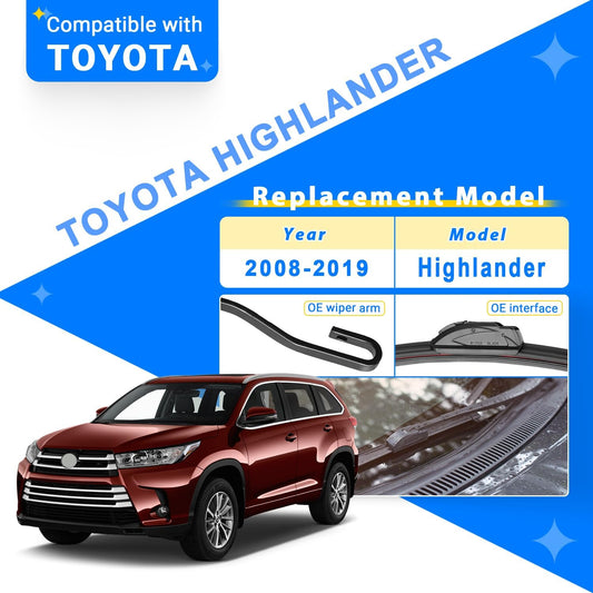 Windshield Wiper Blades Replacement for Toyota Highlander 2008-2019 Original Factory Quality Front Rear Wipers Blade Set for My Car - 26" 20" 12" (Pack of 3)