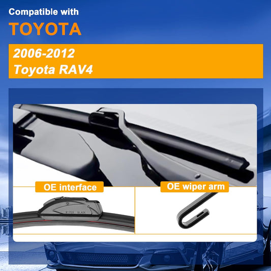 Windshield Wiper Blade Set Replacement for Toyota Rav4 2006-2012 Original Equipment Replacement Front Wiper Blades-24"/17"/12" (Set of 3) U/J Hook