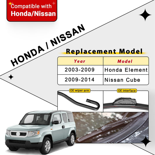 Windshield Wiper Blades Replacement for 2003-2009 Honda Element / 2009-2014 Nissan Cube Original Factory Quality Front Rear Wipers Blade Set for My Car - 20" 20" 12" (Pack of 3)