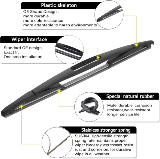 Windshield Wiper Blades Replacement for Toyota Yaris 2007 2008 2009 2010 2011 Original Factory Quality Front Rear Wipers Blade Set for My Car - 26" 14" 12" (Pack of 3)