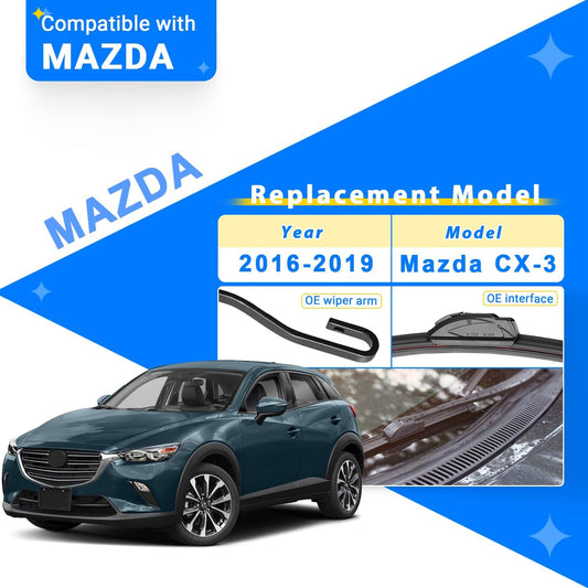 Windshield Wiper Blades Replacement for Mazda CX3 CX-3 2016 2017 2018 2019 Original Factory Quality Front Rear Wipers Blade Set for My Car - 22" 19" 10" (Pack of 3)