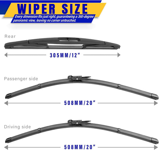 3 wipers Replacement for 2008-2012 Ford Escape, Windshield Wiper Blades Original Equipment Replacement - 20"/20"/12" (Set of 3) Pinch Tap