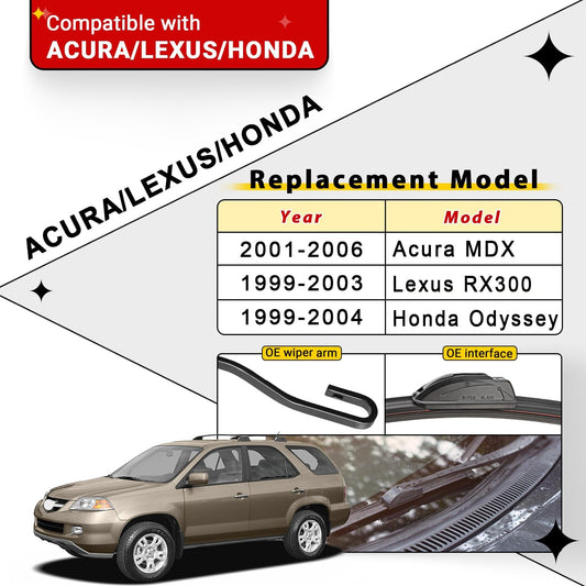 Windshield Wiper Blades Replacement for 1999-2004 Honda Odyssey / 1999-2003 Lexus RX300 Original Factory Quality Front Rear Wipers Blade Set for My Car - 24" 21" 16"