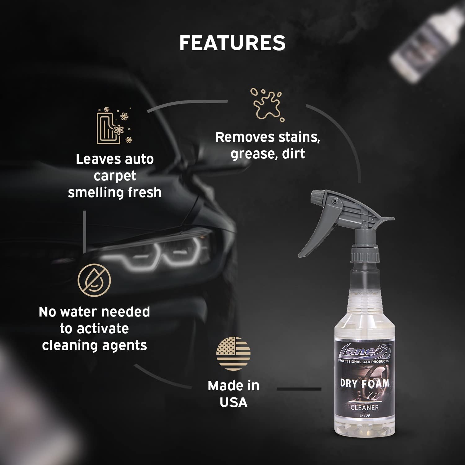 - DRY FOAM CLEANER- This is a dry foam cleaner that is used without water. Just spray Dry Foam on the carpet or floor mat and agitate with a microfiber towel or carpet brush and vacuum.