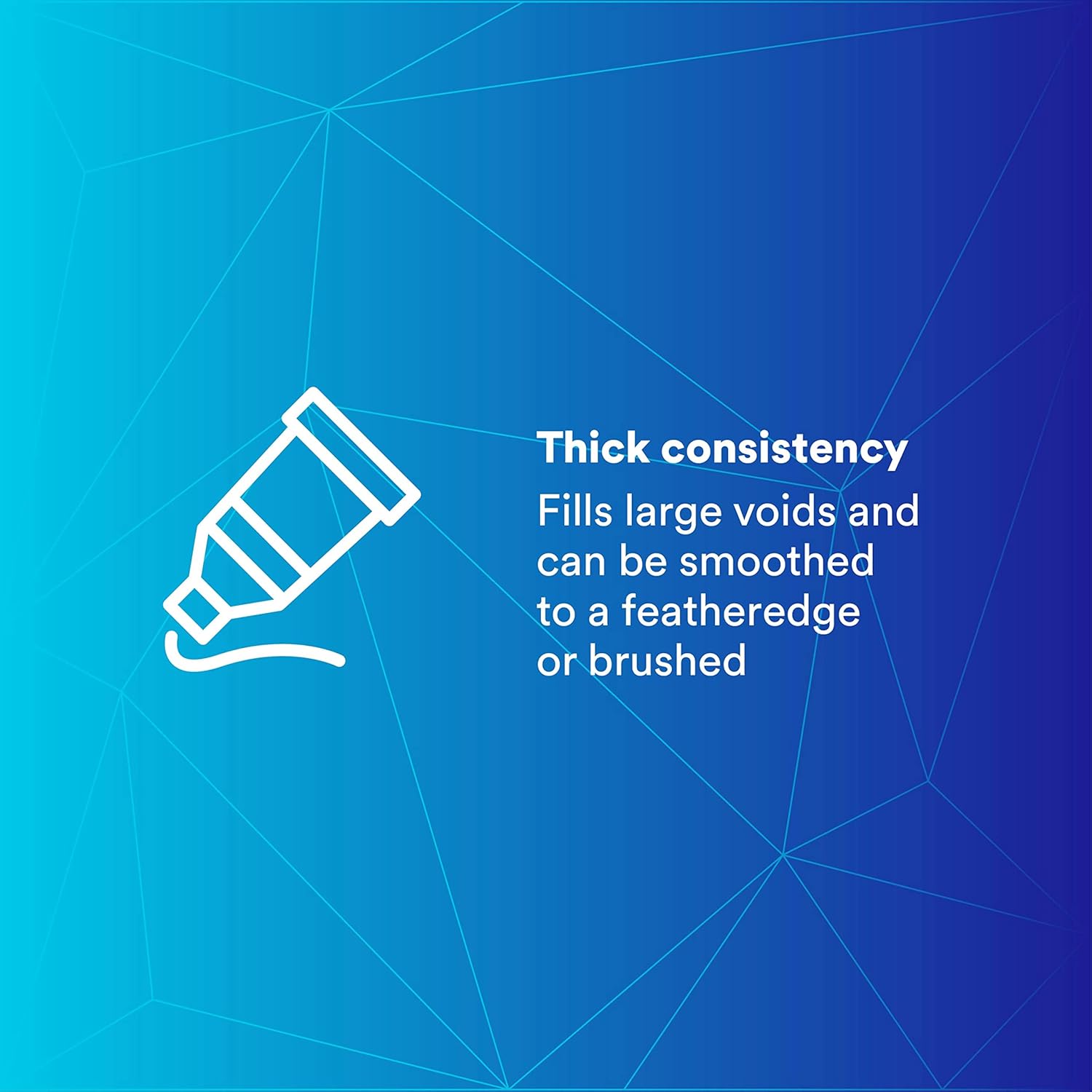 - THICK CONSISTENCY: Fills large voids and can be smoothed to a featheredge or brushed