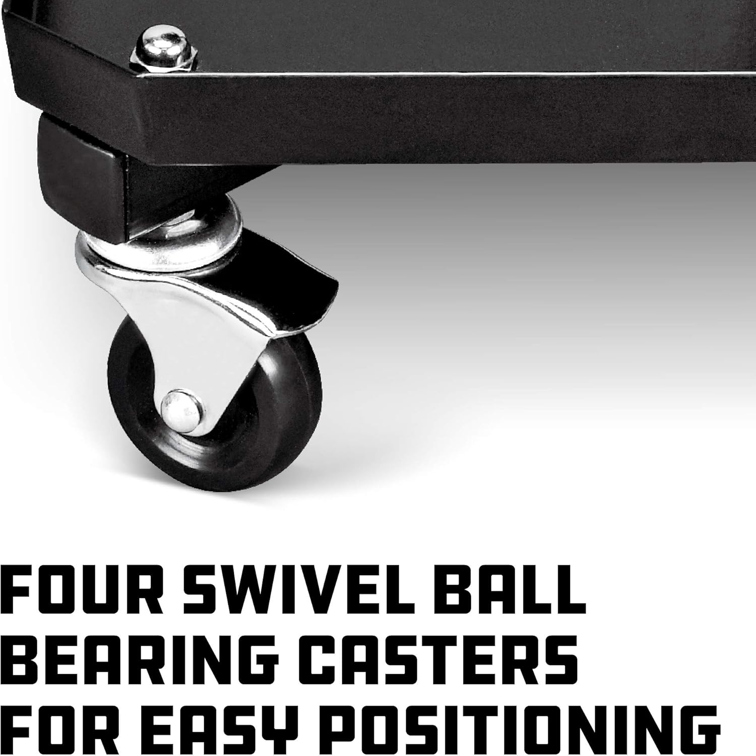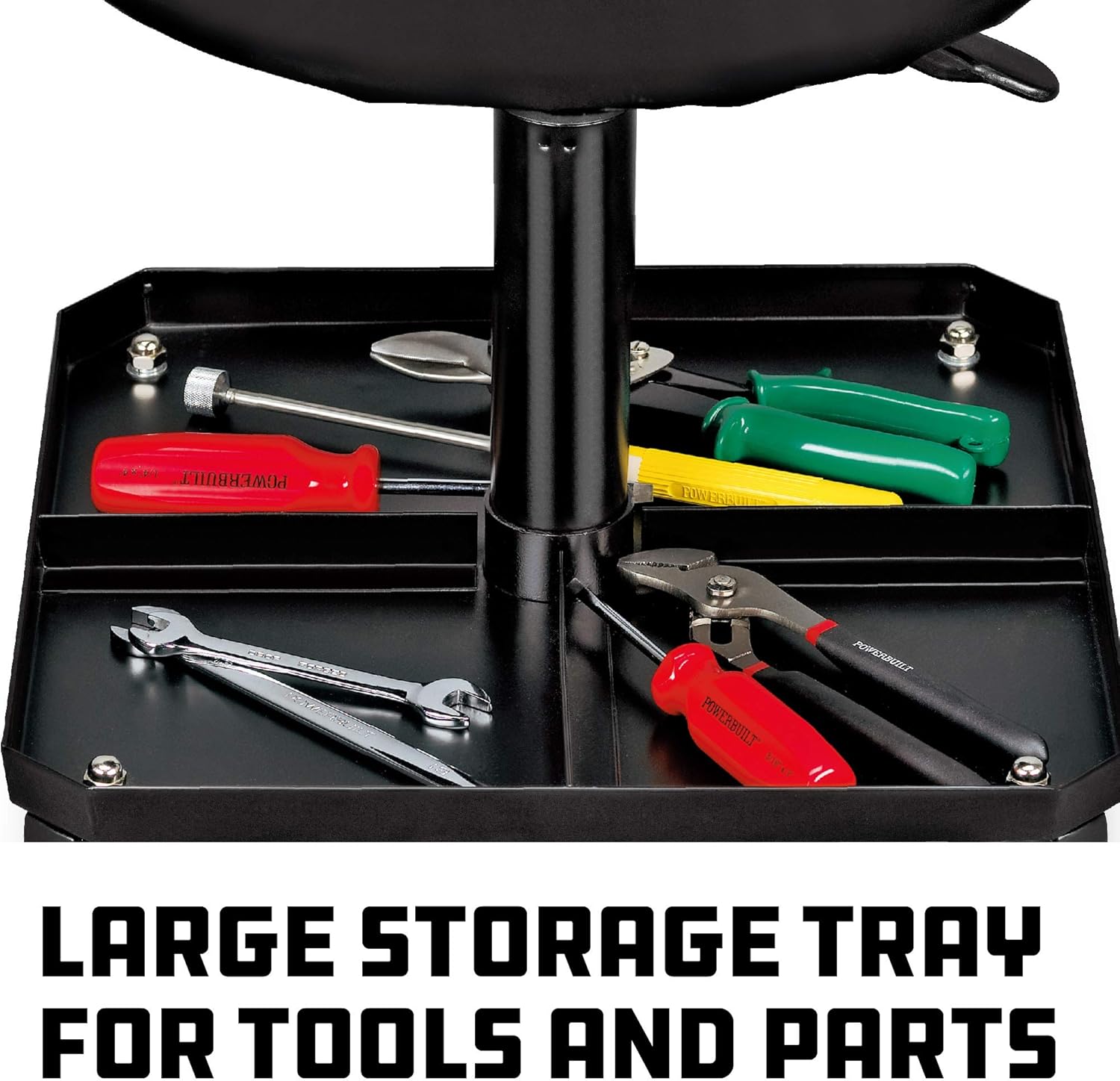 Powerbuilt Rolling Seat, Height-Adjustable Garage Stool with Tool Tray, Smooth and Padded for Car Repair, Detailing, Comfort - 640834, Black