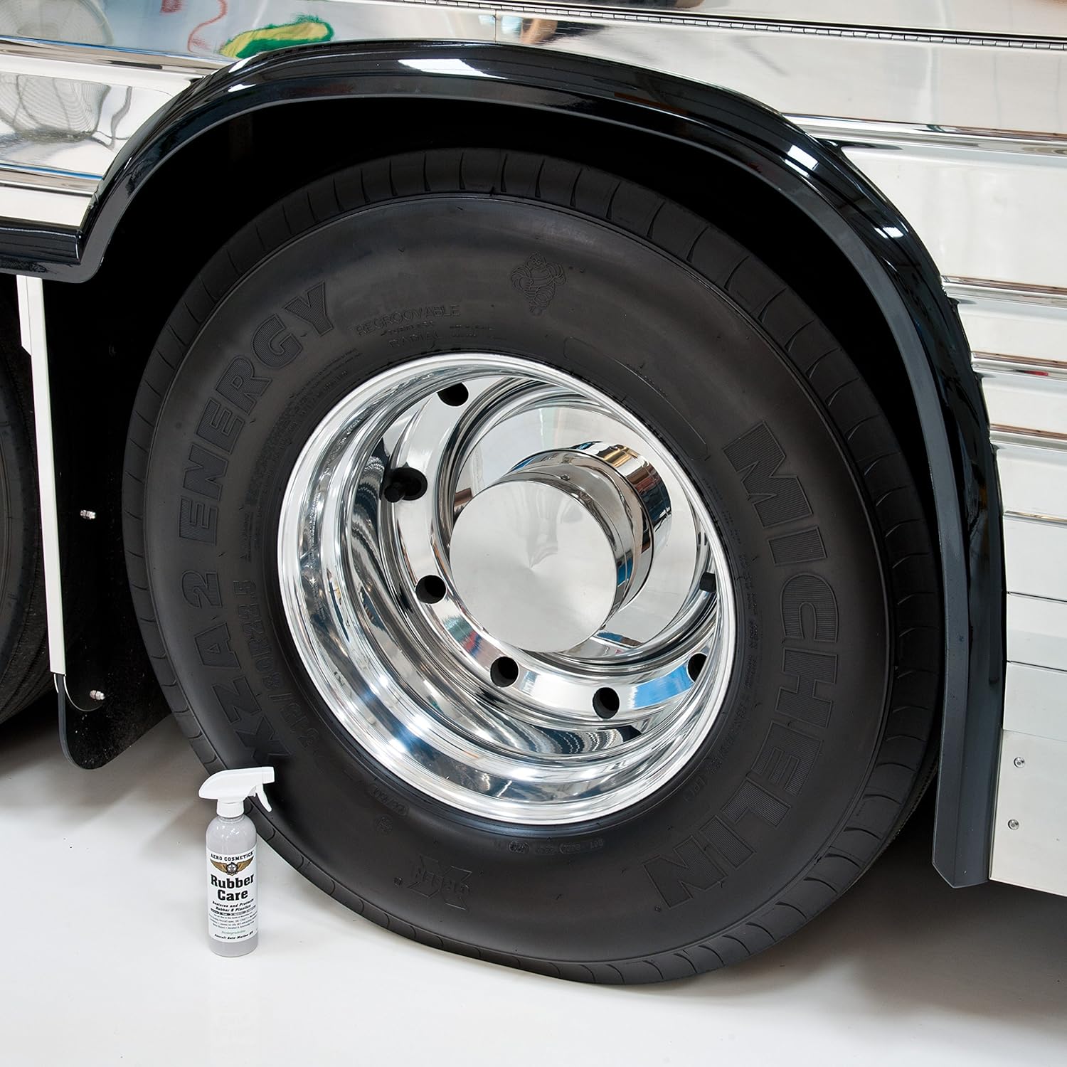 - When used as directed, Rubber Care will leave a beautiful dark black satin/matte look that is dry to the touch and will not attract dirt and break dust. This means the rubber will stay cleaner longer and be easier to keep clean. SEE EXAMPLE PHOTOS ON THE LEFT