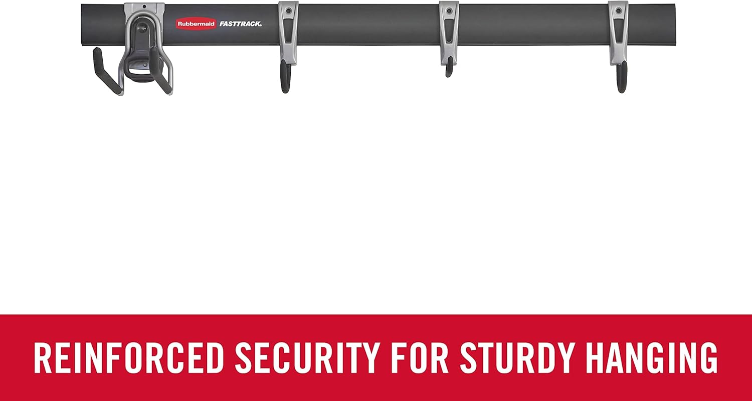 Rubbermaid FastTrack Garage Storage Utility Hooks 5 Piece Black All in One Rail Hook Kit and Tool Organizer Heavy Duty for Home/Garage/Shed/Garden