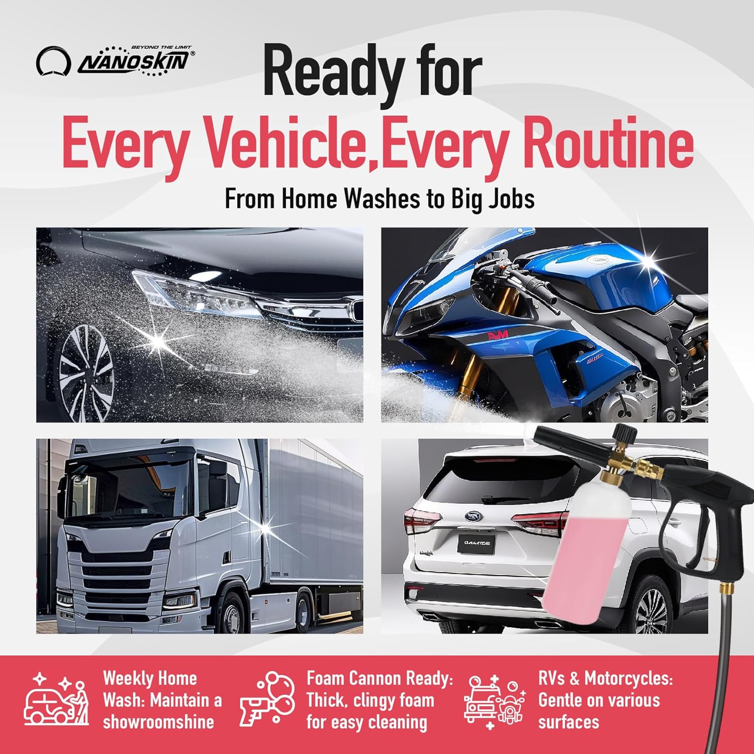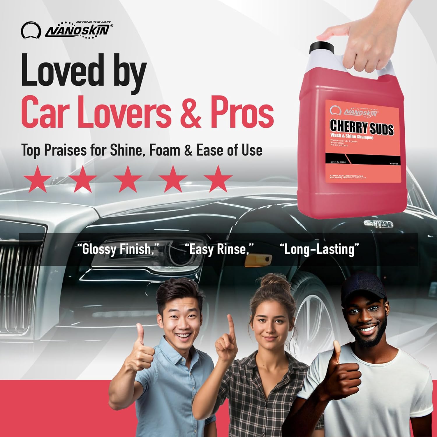 Nanoskin CHERRY SUDS Foaming Car Wash Shampoo 16 Oz. - Works with Foam Cannon, Foam Gun, Bucket Washes, Car Soap for Pressure Washer | Safe for Cars Trucks, Motorcycles, RVs & More | Cherry Scented