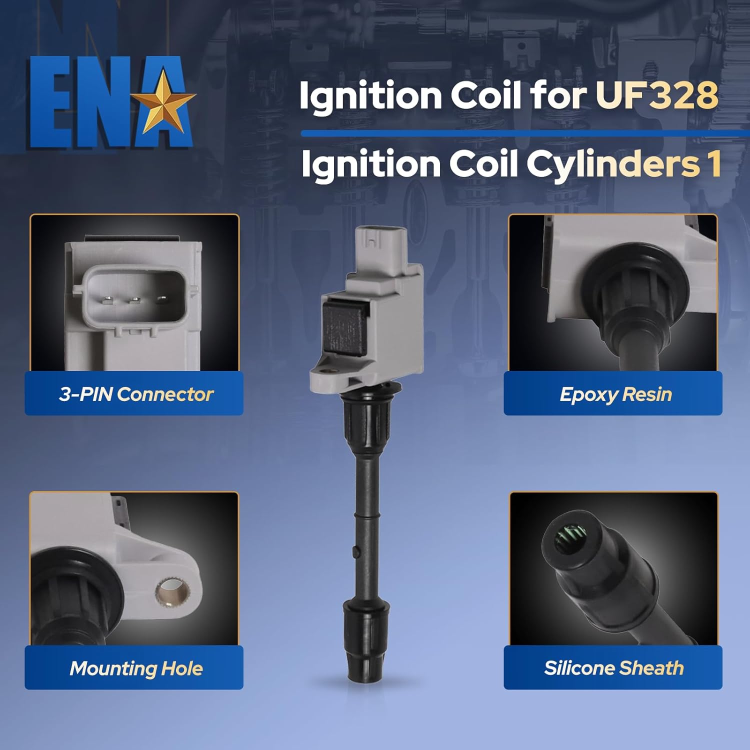 - Reference Number: Ignition coils Cylinders 1 replacement for UF328 UF-328 224484W000 224484W001. Coil Pack Cylinders 2-6 replacement for UF331 UF-331 224484W010 224484W011 UF331T. ENA Ignition Coils Features: plug-and-play design that allows for easy installation and are compatible with popular vehicles such as 2000 2001 Pathfinder QX4 V6 3.3L 3.5L