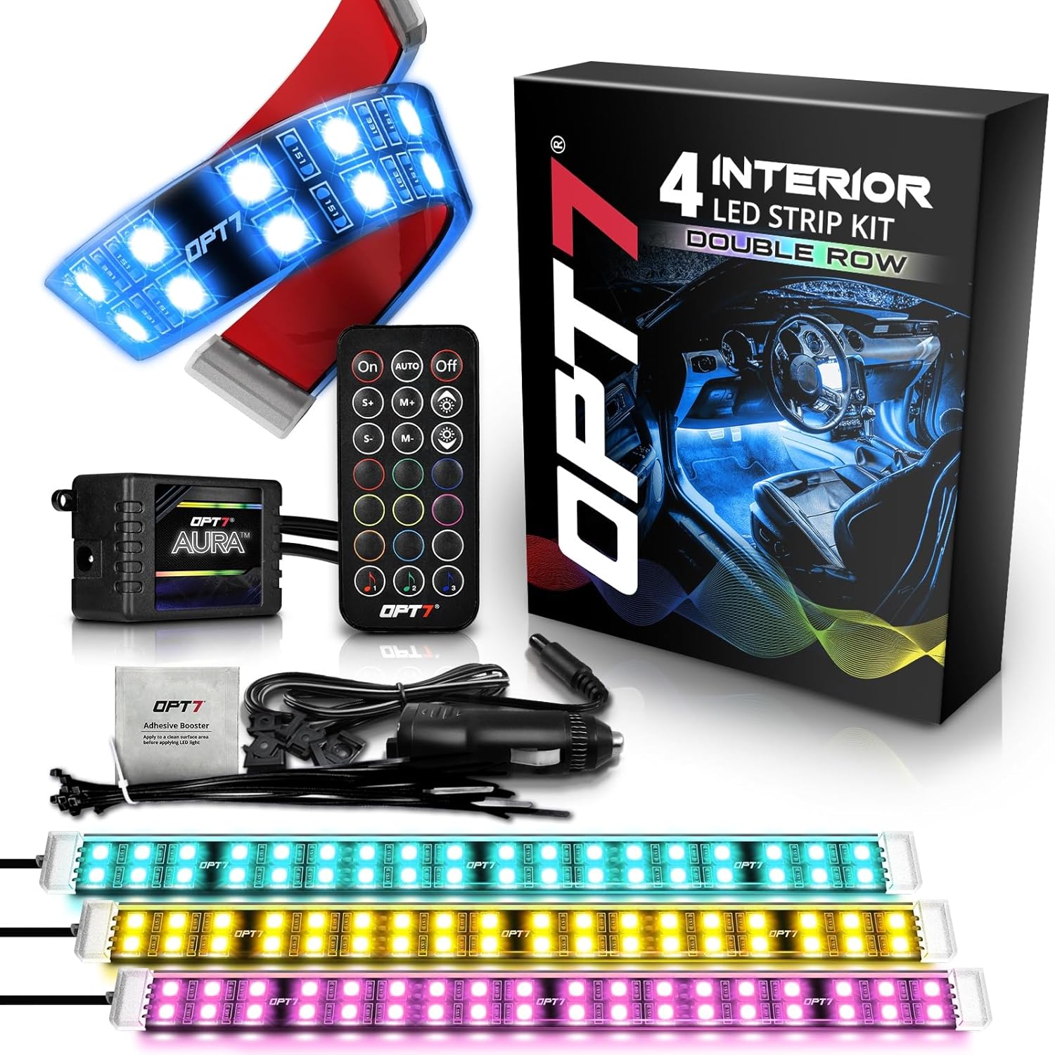 - [Double Glow] Stand out at your next car meet with OPT7’s exclusive double-row LED strips. Engineered for ultra-brightness, the premium LED strips deliver everything from chill blue vibes for relaxed drives to captivating party light effects that steal the spotlight.