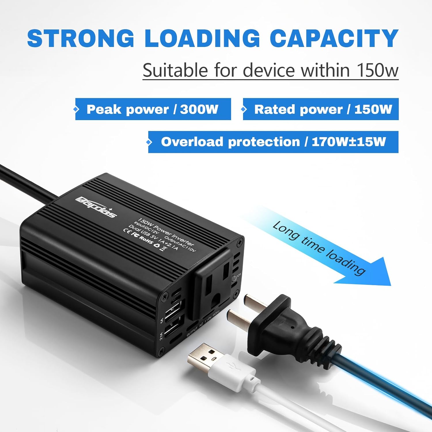 - What You Get: Bapdas 150W car power inverter, user manual, 18 months warranty and 100% customer service