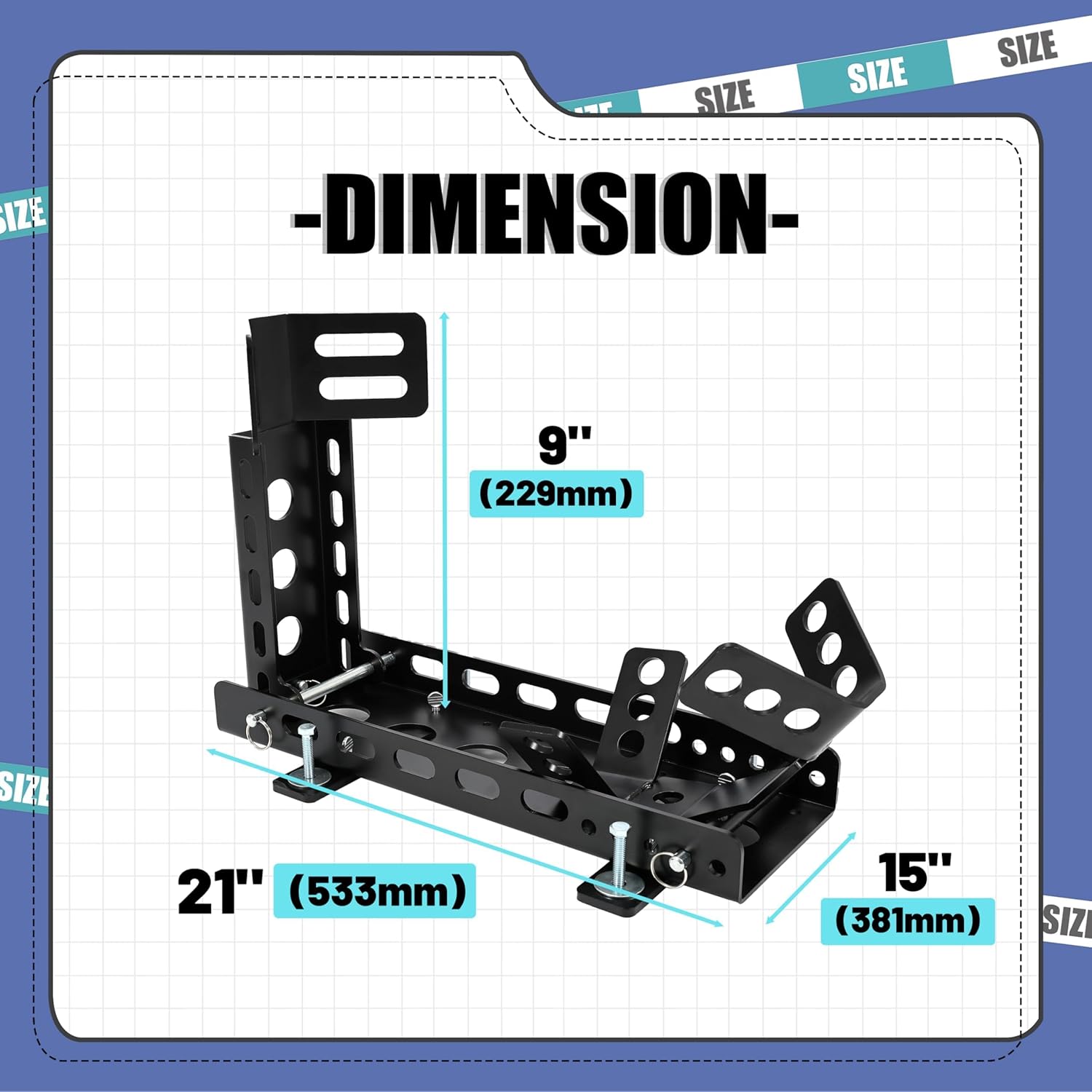 - Foldable Design- Motorcycle Wheel Chock Stand's dimensions in the upright position are 9” wide, 25” long and 15” high. Once folded, it becomes 9” wide, 25” long and 7” high.