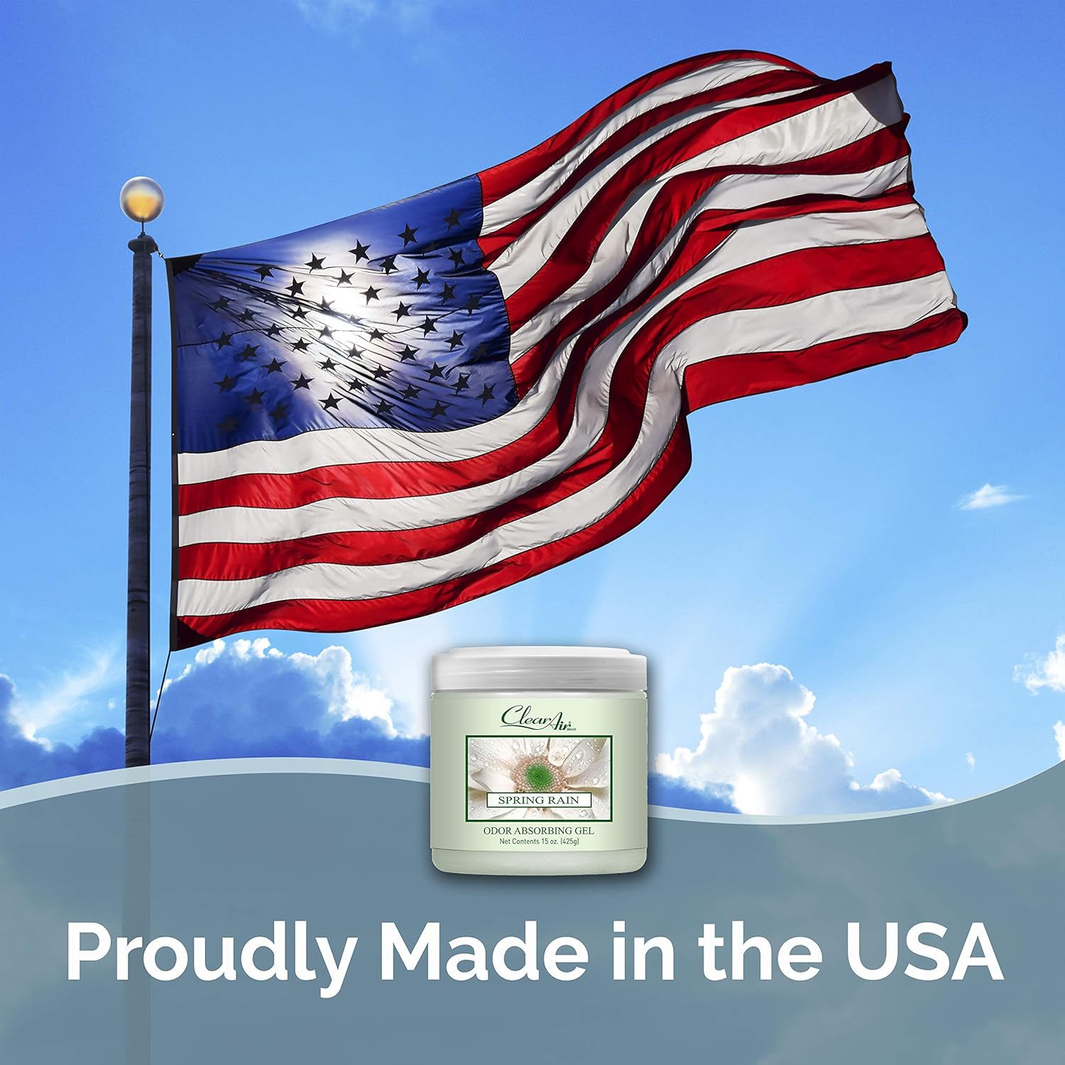 Clear Air Odor Absorber Gel - 15 oz, Pack of 2 - Air Freshener Absorbs and Eliminates Odors in Bathrooms, Cars, Boats, RVs and Pet Areas - Made with Essential Oils - Spring Rain Scent