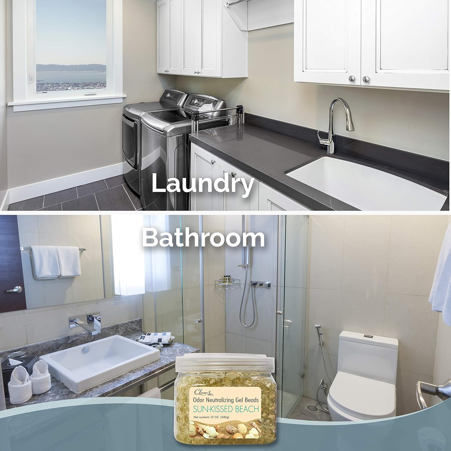 Clear Air Odor Eliminator Gel Beads - 12 oz, Pack of 2 - Air Freshener Made with Essential Oils - Eliminates Odors in Bathrooms, Cars, Boats, RVs & Pet Areas - Sun-Kissed Beach Scent