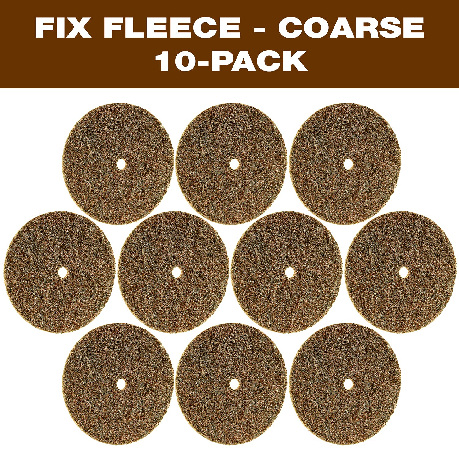 CS Unitec 80615 FIX Fleece (Nonwoven) Disc for The FIX Hook and Loop System, 4-1/2" Diameter, Coarse (Brown) (Pack of 10)