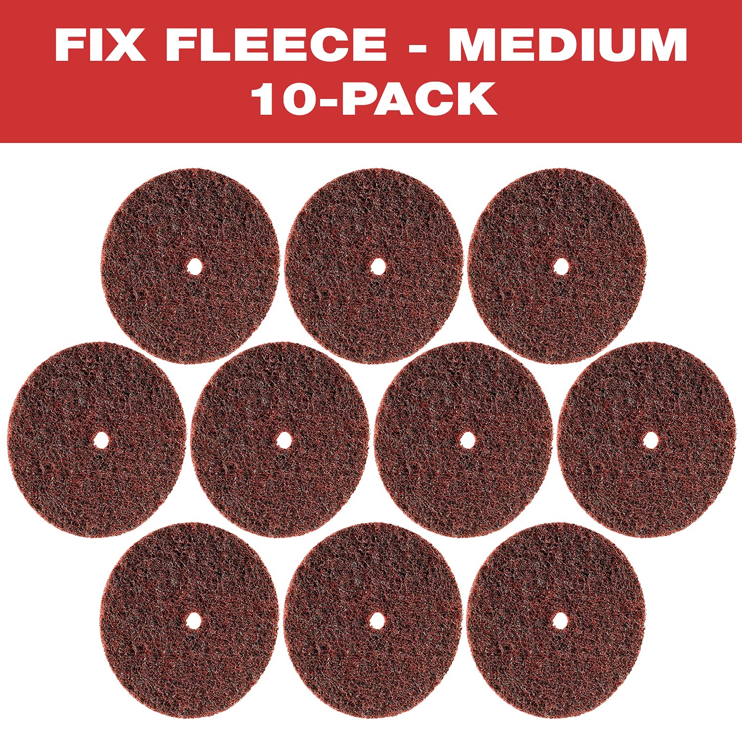 CS Unitec 80616 FIX Fleece (Nonwoven) Disc for The FIX Hook and Loop System, 4-1/2" Diameter, Medium (Red) (Pack of 10)