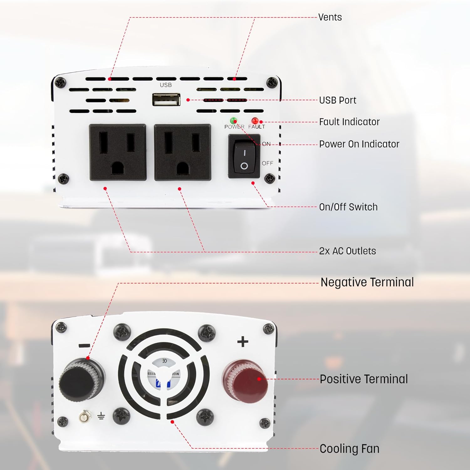 Wagan EL3718 800W Slim Line AC to DC Power Inverter 800W TrueRated Continuous 1600W Surge Power DC 12V to AC 110V Power Inverter with 2 AC Outlets and 2A USB Charging Port