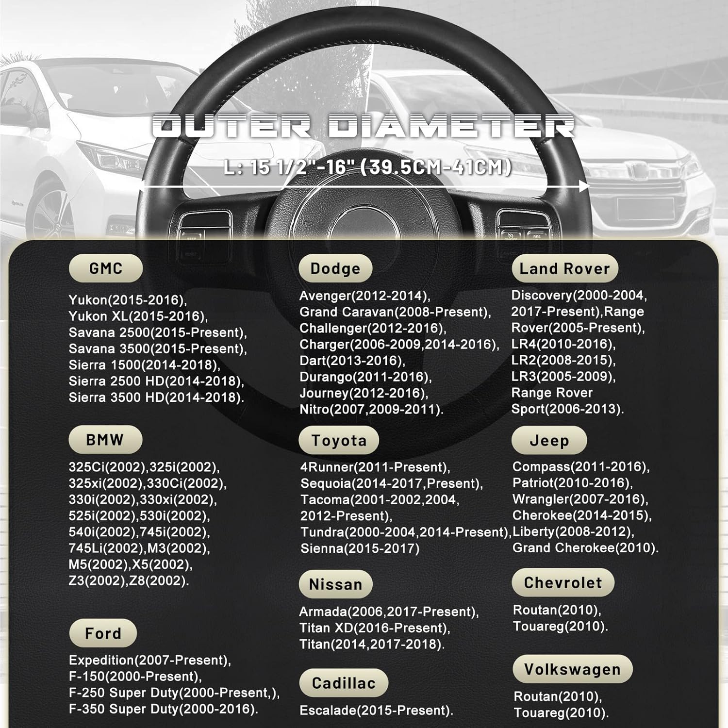 - READY TO INSTALL: Warm up the steering cover, and slip it on your steering wheel. Installation is fairly easy, any adult can install this steering wheel cover. Suitable for large size steering wheels with outer diameter of 15 1/2-16 inches, please carefully measure the size of your steering wheel before purchasing.
