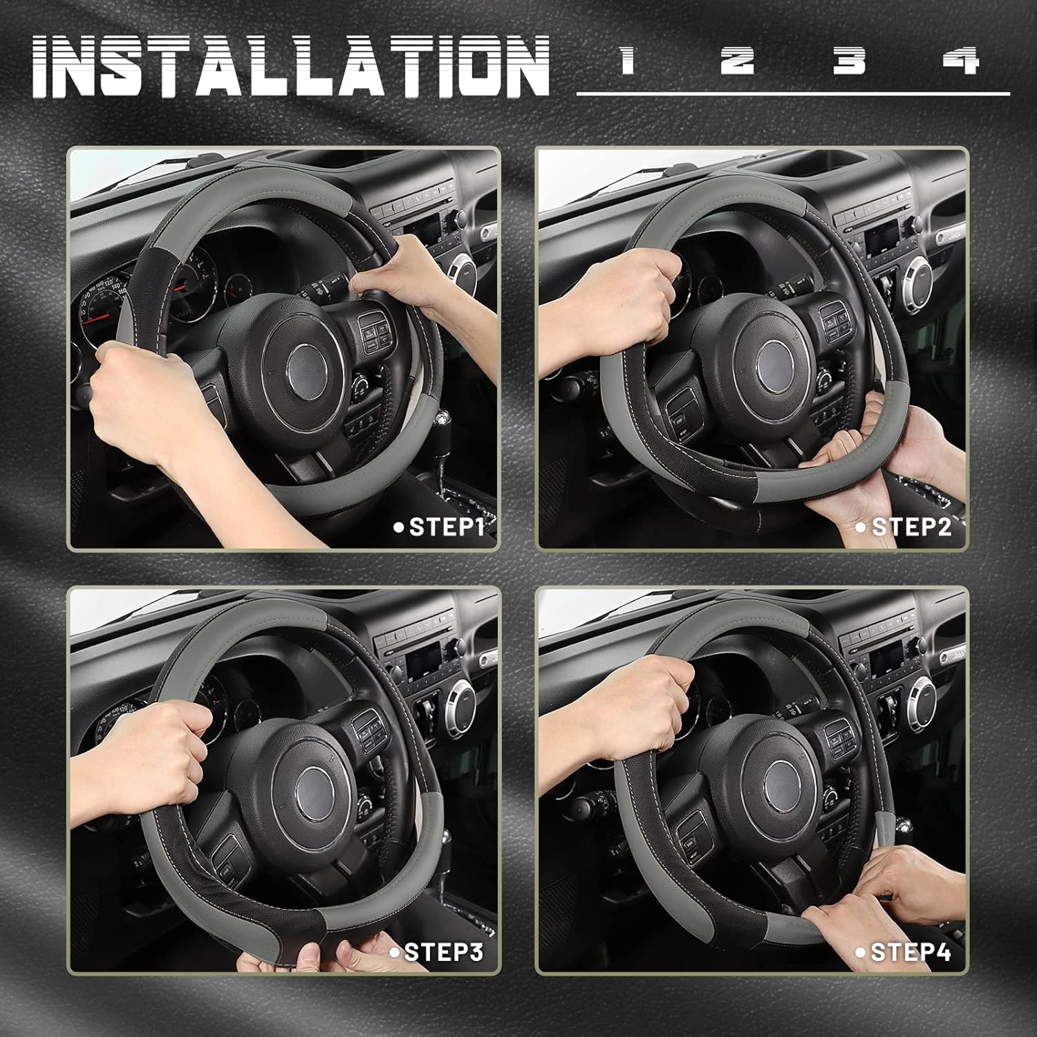 - ARMOR UP YOUR CAR INTERIOR: The durable and easy-to-install steering wheel cove is the premier option for covering an old or worn original factory steering wheel. The delicate splicing design adds texture to the interior of your car.