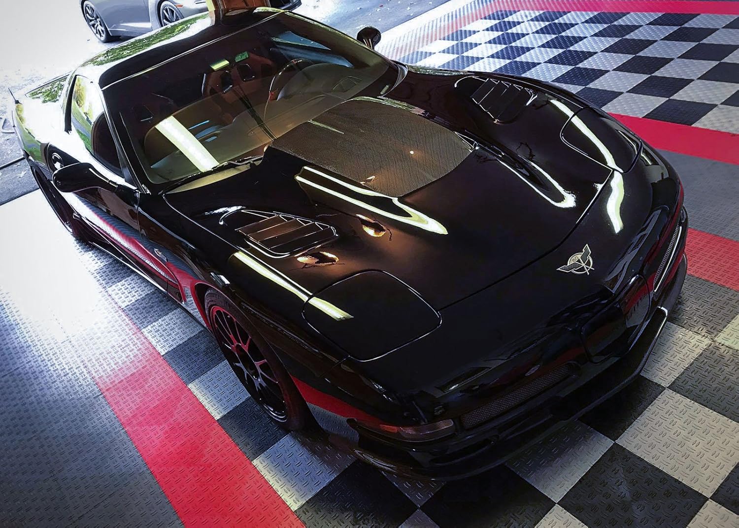 - Easy to clean protective flooring. Clean-up is a breeze and won’t leave stains. Car Oil, dirt, dust, or other messes are no problem with a mop or shop vac