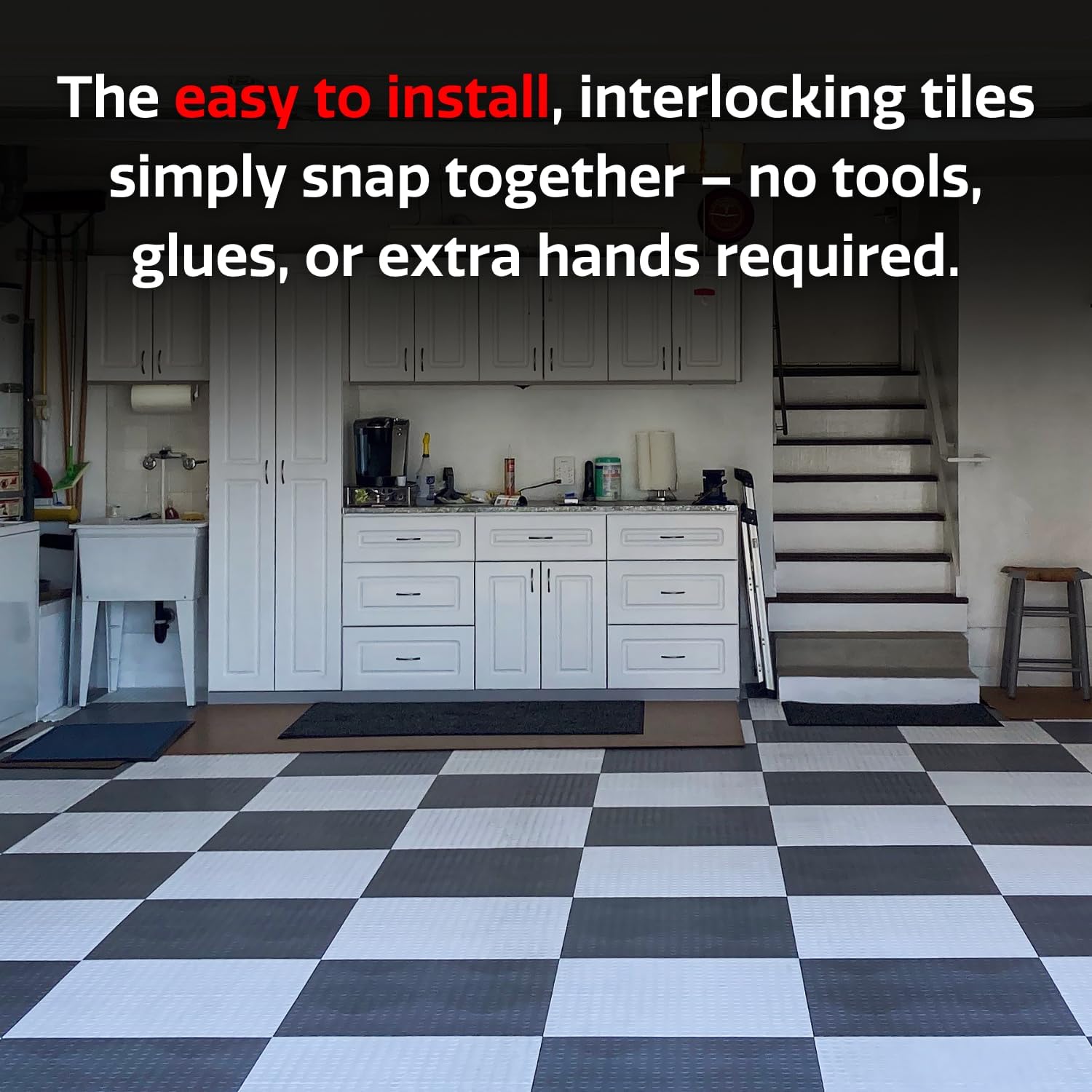 - QUICK AND EASY INSTALLATION: Our patented PowerLock Technology flooring modules lock in place and stay engaged. The easy to install, interlocking tiles simply snap together – no tools, glues, or extra hands required. These high impact tiles install quickly and are built to last!