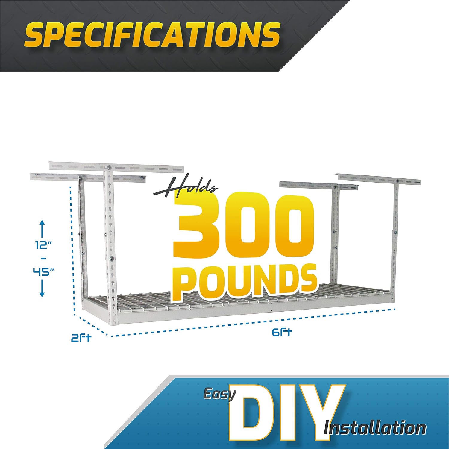 • Adjustable Ceiling Mount: The overhead garage storage rack can be adjusted to fit ceilings 12"-21" for optimal height.