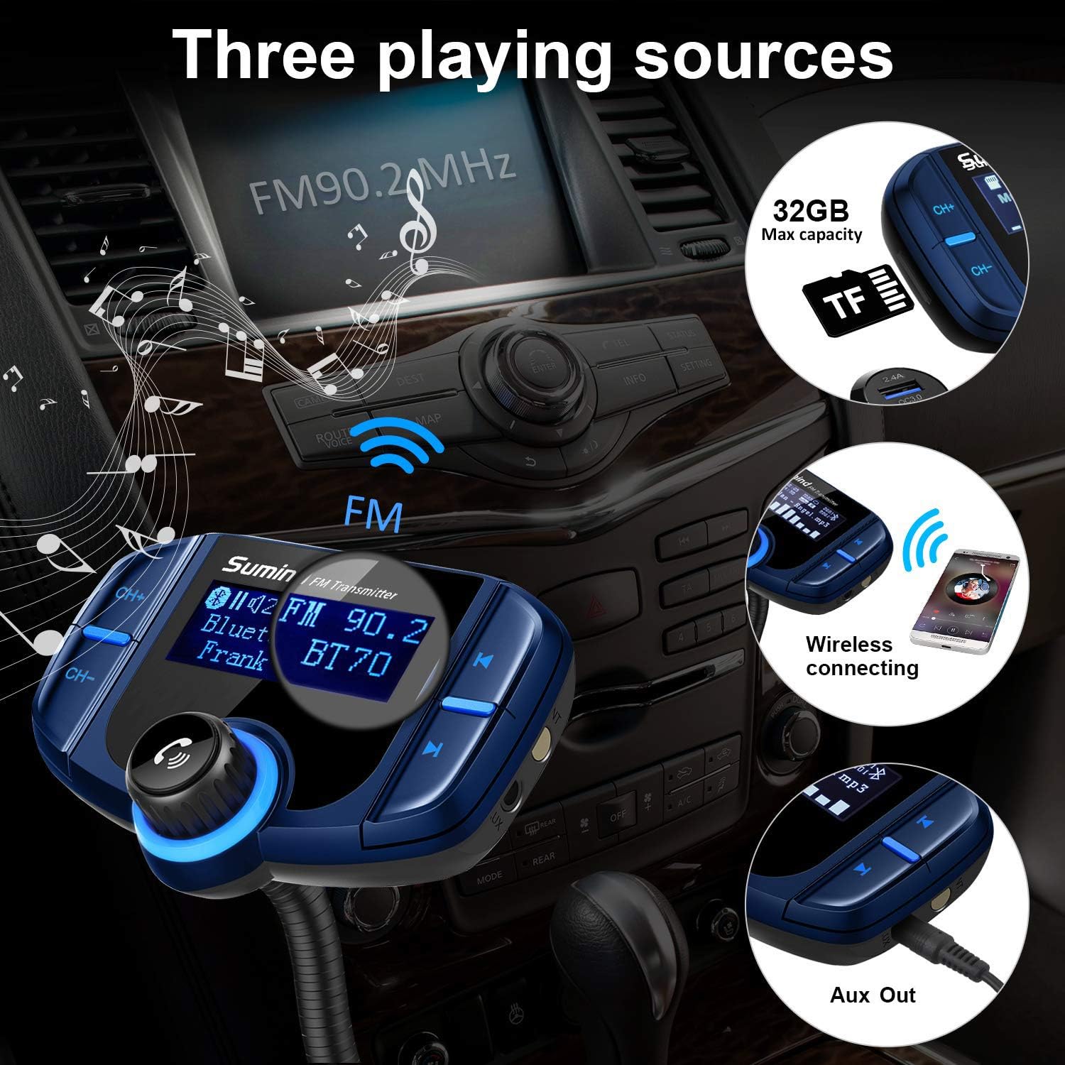 - Special Design: large key for easy operation; 1.7 Inch large LCD backlight display song name/ incoming phone number and shows your car's battery level when car start; Can rotate the LCD display screen in 270 degree gooseneck for optimal viewing comfort; Turn off the FM transmitter: long pressing the next song key for 5 seconds, it will turn off the FM and functions keep charging function
