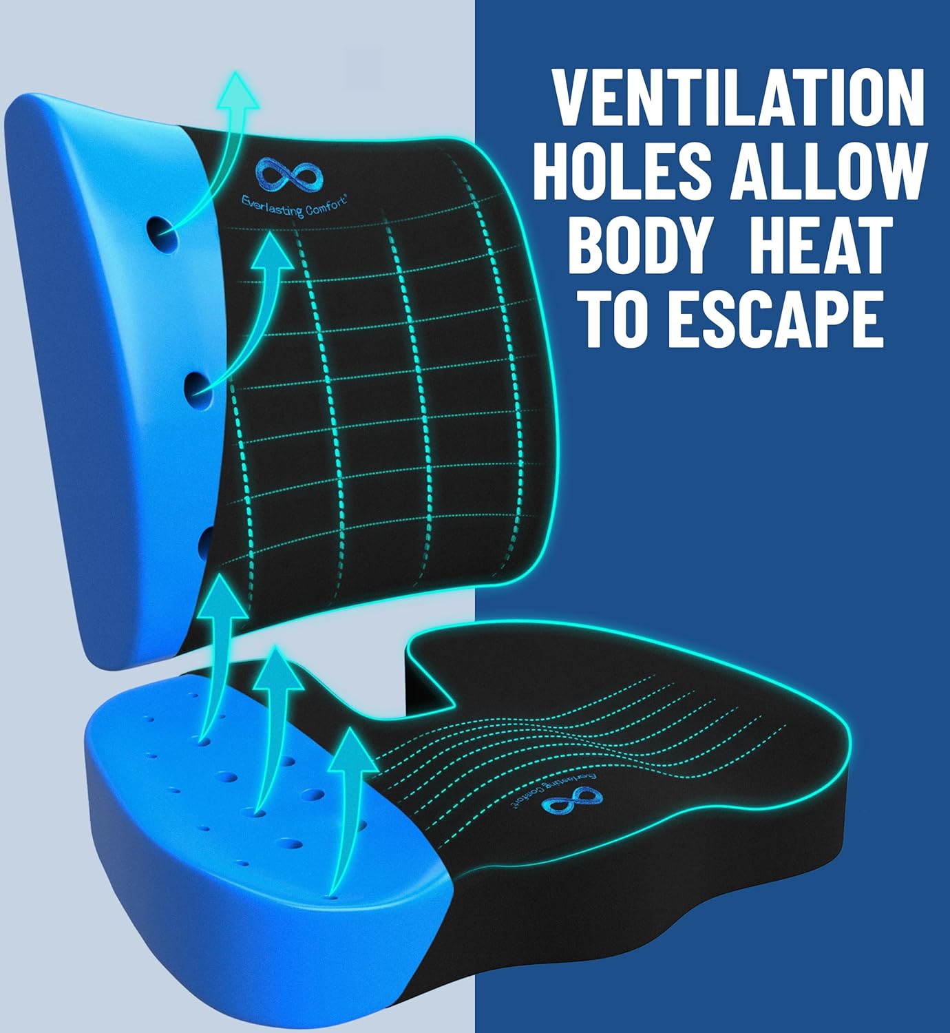 - VENTILATED DESIGN: Strategic ventilation holes in the memory foam promote air circulation, keeping you cool and comfortable during long sitting periods