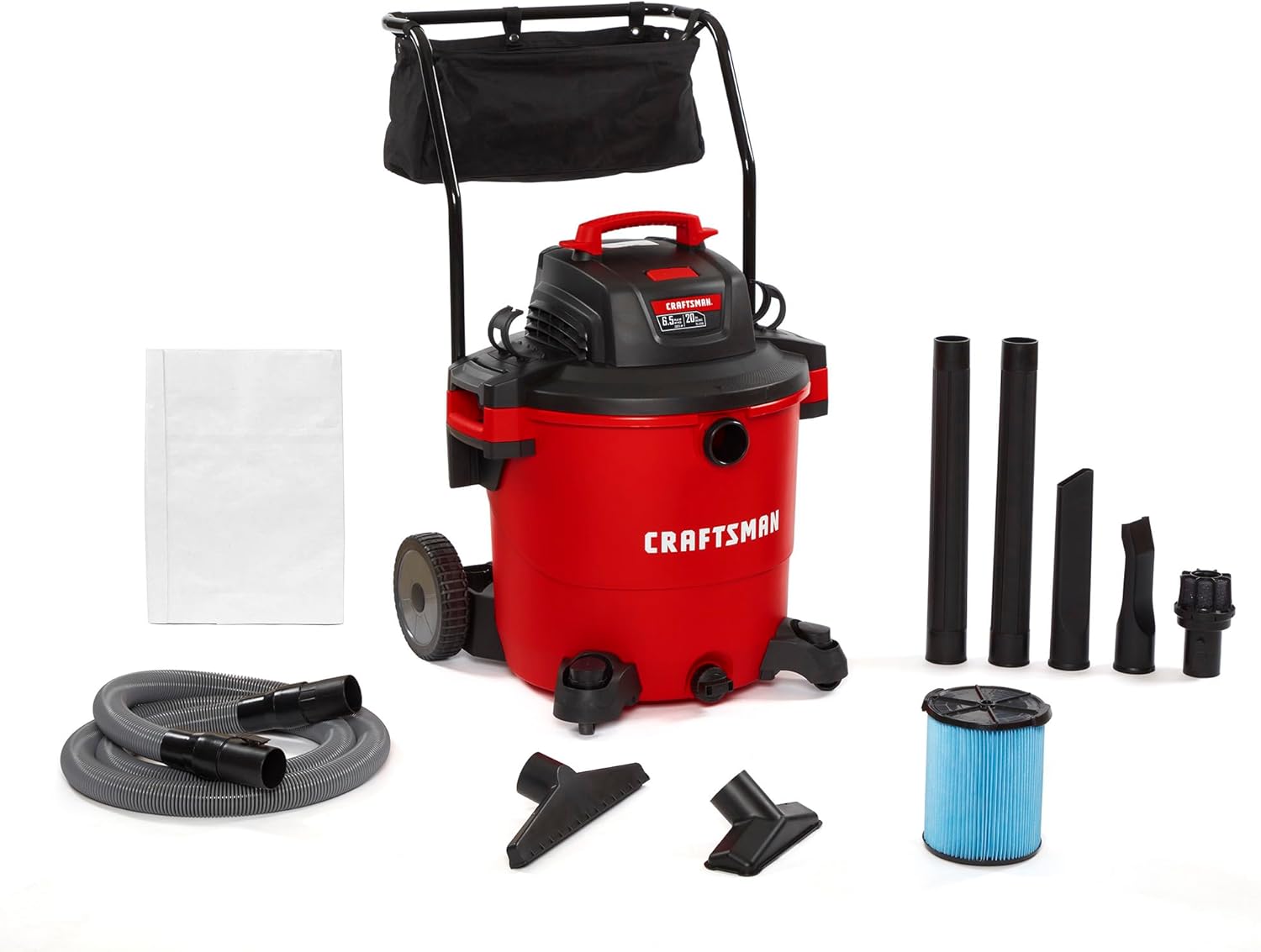 CRAFTSMAN CMXEVBE17656 20 Gallon 6.5 Peak HP Wet Dry Vac with Cart, Heavy-Duty Shop Vacuum Wet and Dry with Fine Dust Filter, Dust Bag, Hose and Attachments for Shop, Garage, Jobsite Cleaning