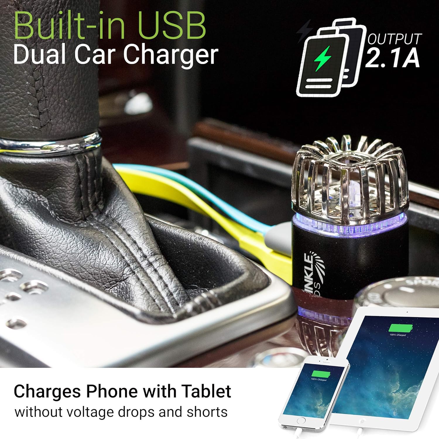 Car Air Purifier Ionizer - 12V Plug-in Ionic Anti-Microbial Car Deodorizer with Dual USB Charger - Smoke Smell, Pet and Food Odors, Allergens, Viruses Eliminator for Car (Matte Black)