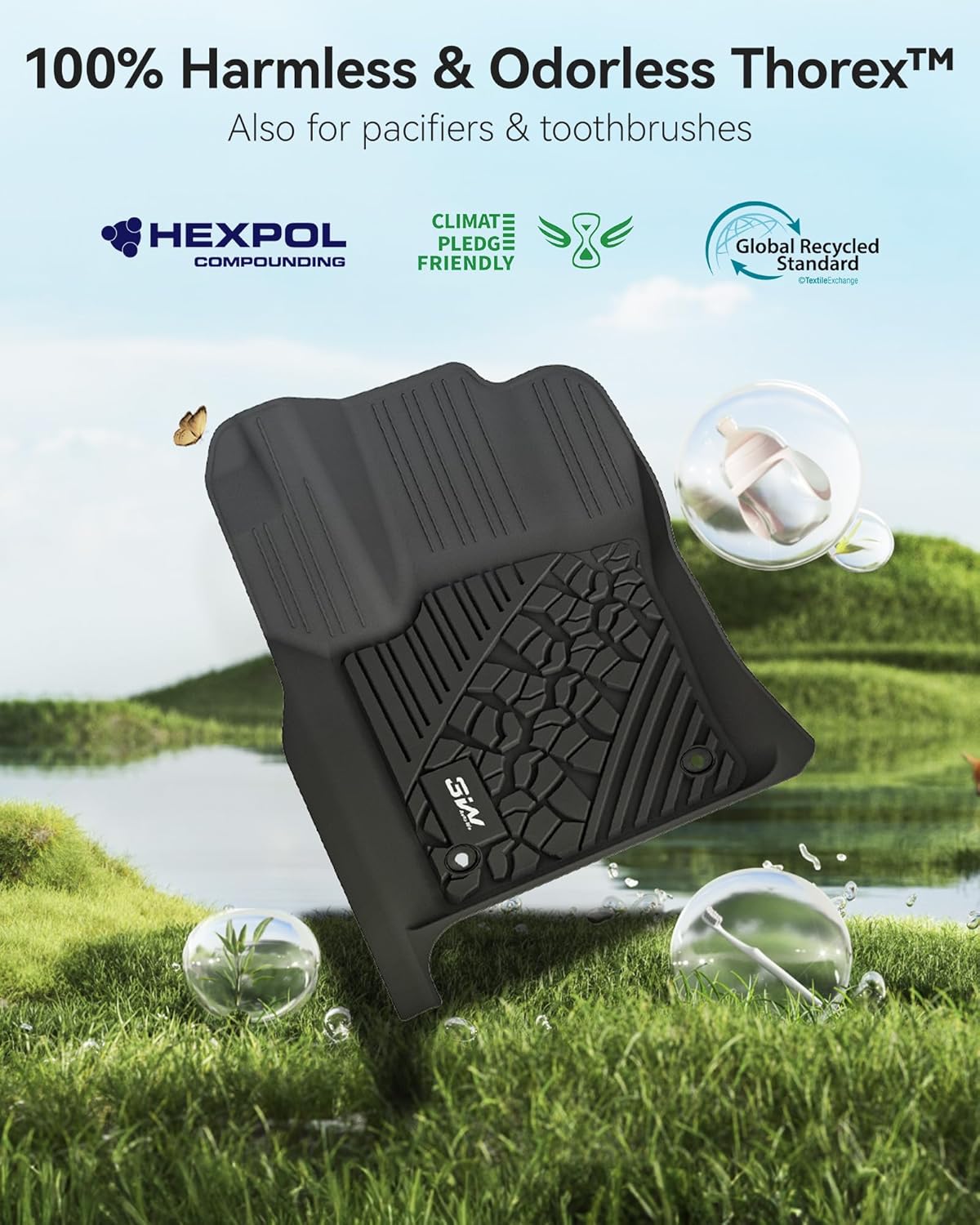 - GREEN AND RECYCLABLE LINERS: The Jeep Grand Cherokee floor mats are made with TPE rubber material. This recyclable and flexible materials make no smell even in extremely high temperature and won't crack, curl or harden in sub-zero weather. Bring you and your families a safer and more comfortable interior car environment.